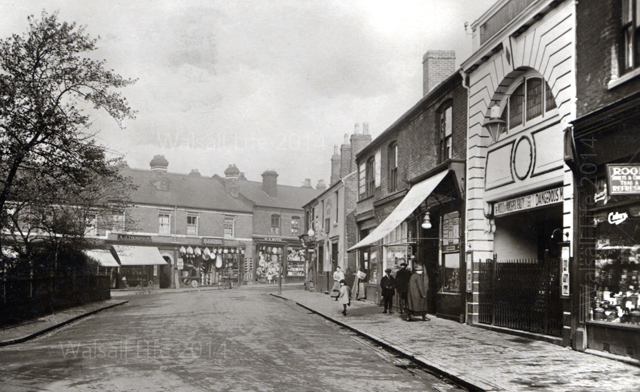 The row of shops in the background of the picture shows A. J. Thompson, butcher, with the blinds down, the shop with the baths and buckets hanging was that of Mrs A. Mander, ironmongers, followed by the haberdashers of E. A. Boys. In later years I recall the greengrocers of Bedworths, everyone I knew called it Bedduths, which was near to where Thompsons was. I am sure they used to hang oil lamps outside in winter like they did on market stalls, I continue to love that smell today and if I catch a whiff of something similar I always think of Bedduths! Past Bedworths was Marsdens a shop similiar to the Happy Anniversary if I remember correctly. Out of view on the picture and the other side of E. A. Boys was Shelley’s Chemist a well-known name in Caldmore and Palfrey along with that of Thatchers, who also had chemist shops in Walsall.