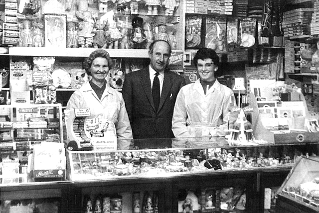 It was in the little shop at 2 Little Caldmore that I first heard of the plane crash that took the lives of so many of the Manchester United team on 6th February 1958. My great-uncle was in hospital and my Mom was running the shop, at the end of the school day I had to make my way from Whitehall Juniors up to the shop. That day I am sure there was thick snow in Walsall so my journey was delayed as the opportunity to throw snowballs every inch of the way wasn’t missed. On arriving at the shop my Mom told me the bad news, unlike today, everyone loved Man U, I think, so it was a real blow. The day wasn’t suppose to end sadly like this, the previous week me and my Dad had popped over the road to Sid Grainger’s Model Shop on the corner of Mount Street and Caldmore Road to order a huge Revell plastic model of the US aircraft carrier, USS Forrestal and this was the day we were due to pick it up! To remind readers of the shop I have include a picture from a page in my 2003 Walsall Lives calendar which shows the shop in the early 1960s, the smaller one shows the premises in the 1930s when it was the home of Caldmore Footwear. Also on display are a couple of 72nd scale Airfix plastic model kits that used to retail for around two bob (10 pence in today’s money), in the bottom left corner is a Triang Laundry Set, typical of the toys that could be bought from just down the road from Graingers at another childrens landmark in Caldmore Road, the Happy Anniversary. The next picture is of the owners of the Happy Anniversary, Mr and Mrs Turner with their assistant Nan Torkington, it was Nan who allowed me to use this picture in my calendar in 2011. The shop not only sold toys but also cards for all occasions, dolls, sweets, stationery, trinkets, ornaments and come the autumn, fireworks. It was a fact, living in Caldmore in those days we only went into Walsall town centre for a change of scenery not necessity.
