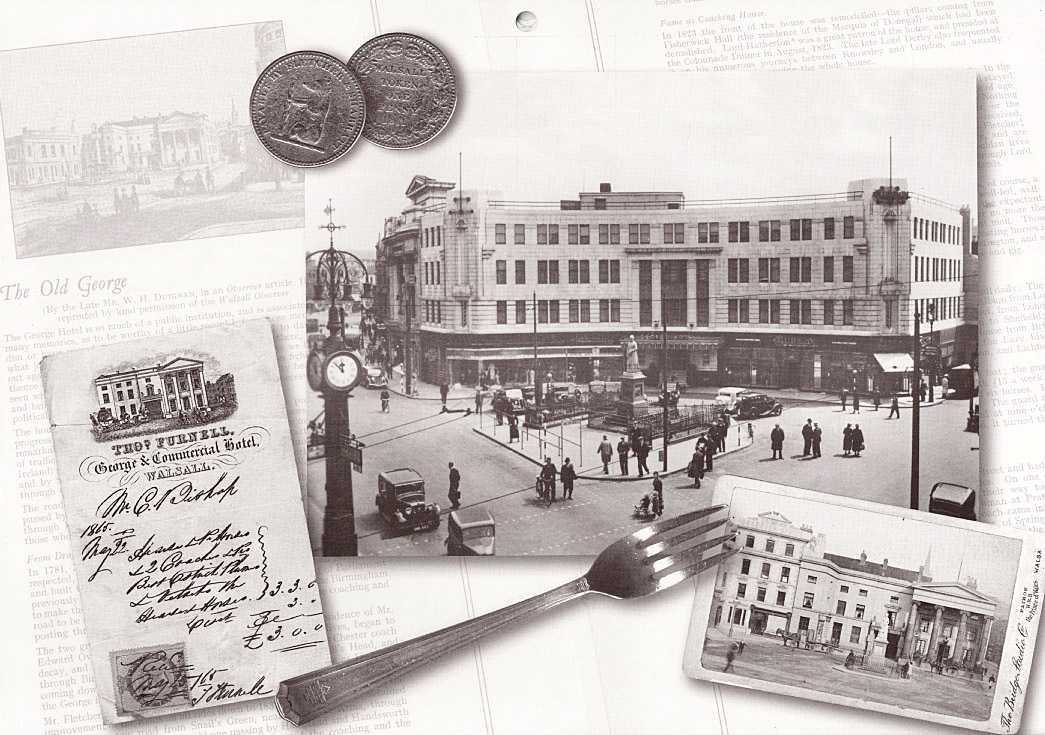 The main photograph shows the new George Hotel at the time of its opening by the Earl of Dudley in November 1935.