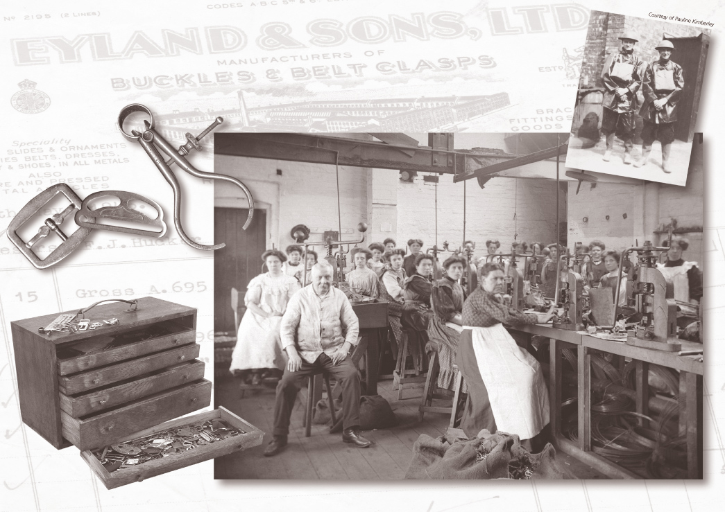 The pre-dominantly female workforce are using the fly or hand press, a simple but effective machine particularly suited to the making of buckles and belt clasps, or indeed, any other product that required its basic shape to be punched out during the initial stages of production.