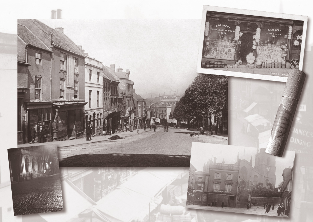 The final picture is of the top of High Street circa 1910, showing the premises of W. Preston, pawnbroker. This is the building casting the hard shadow across the bottom of the main picture.