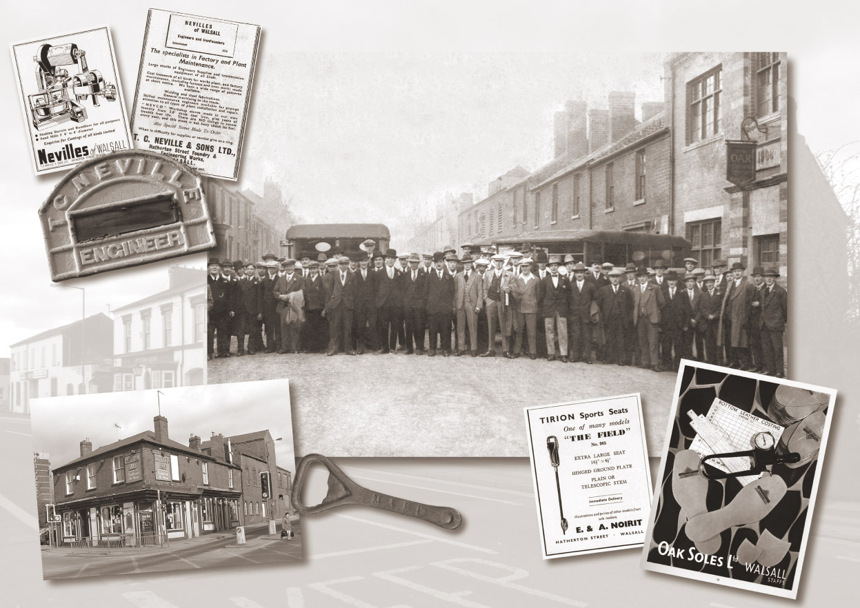 The other picture in the top left first appeared in the calendar for 2003 but is such an unusual and atmospheric image the decision was made to include it again. The picture was taken around 1920 from a location believed to be in Birmingham Street looking across the snow-covered roofs of Gorton’s Yard and Hill Street to St. Matthew’s Church. It is purely a personal opinion, but I think this is one of the great images of a Walsall long gone and I am indebted to Spencer Evans of The Curio Shop in George Street for allowing me to use it again.